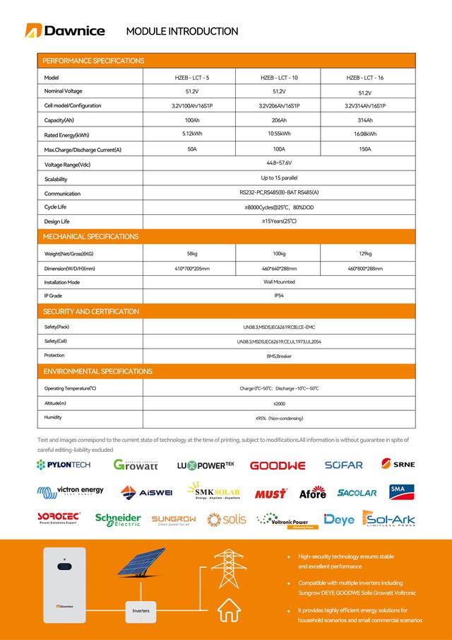 Літієвий акумулятор Dawnice powerwall можна використовувати з більшістю відомих інверторів на ринку.